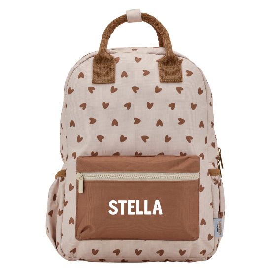 coeurs marron / fond beige -
